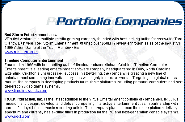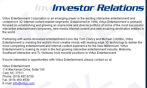 INFORMATION ON THE OTHER TWO COMPANIES VIRTUS....ENTERTAINMENT ?....CORPORATION ![]()