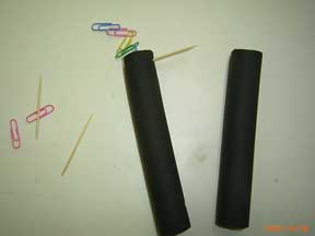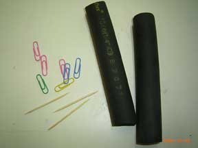 hose,paper clips and toothpicks.