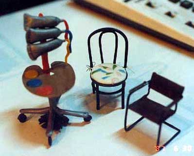 Arty chair allows you to display your art in public places or use it to sweep the house floor together in the display are chair by Marcel Breuer and Micheal Thonet.