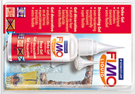 colors of 56 gm. Fimo Puppen, available in ( 3 colors) and Miniature-Puppen Fimo (1 color), both are for making dolls, the latter for modelling miniature dolls, particularly opaque color and creating expressive doll faces.They are available in 500 gm block. Fimo Liquid ( Fimo Decoration Gel) very transparent andextremly flexible can be mixed with glitters, oil paint, paint powder and glow powder. For tranfering images from copy to clay and can be a coating to protect your Fimo projects. Used liquid to create diorama, water pond etc. Packed in plastic bottle à