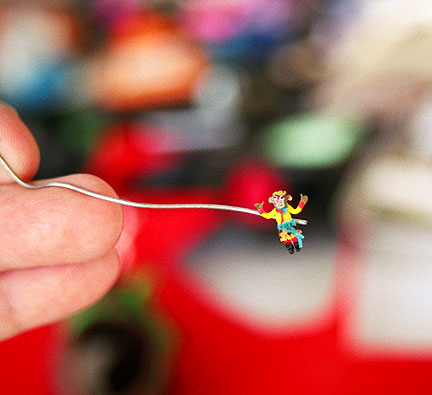 The polymer clay monkey was concealed with very tiny magnet, so that