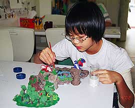 ChewYijun giving final touch up to her clay works, created in differrent module, can be combine