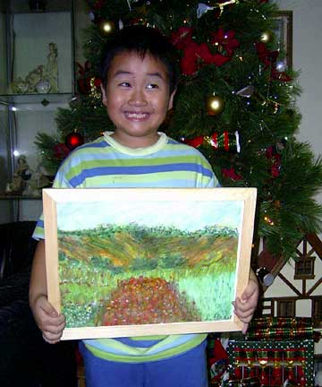 "That's a wonderful story and what an extrordinary (and adorable) child! He's a great artist. I hope that one day his things will be in a gallery! Ilene"