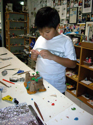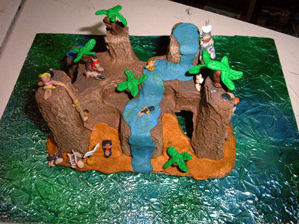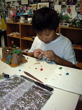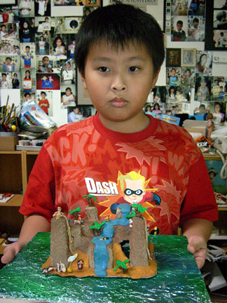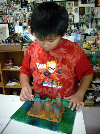 KID CREATING A PRIVATE ISLAND DIORAMA RECYCLE FROM PAPER PACKAGING CONTAINER