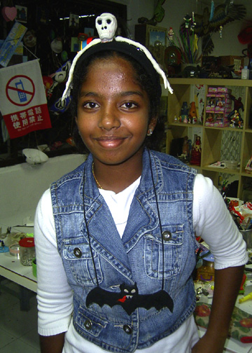 Sruthi: Everytime its Halloween, my hair will stand up! I'm glad to have make the skeleton hairbend to keep it down.