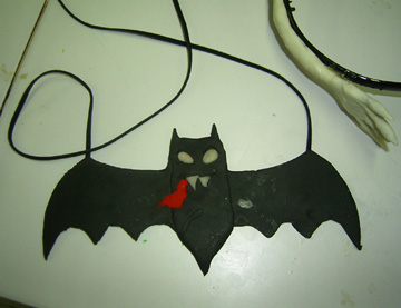 Flexible bat pendant and Glow in the dark skeleton hairbend