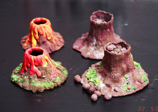 Display of more Volcanos in different design, some exploding volcano will throw out miniature light