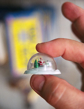 Using discarded miniature toy globe container to create the