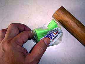 Without removing the wrapper, hammer to