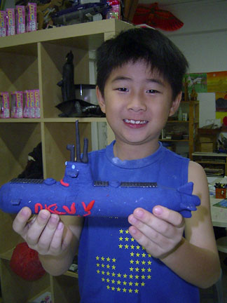 YOUNG STUDENT CREATING SCHOOL PROJECTS