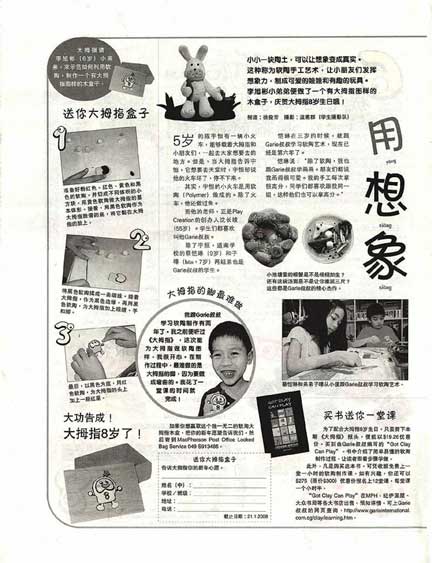 Play Clay Workshop and Book Promotion Featured in Thumbs Up News Magazine For Young Students