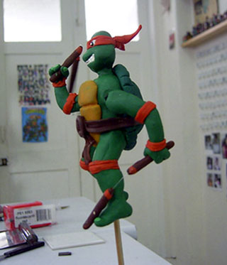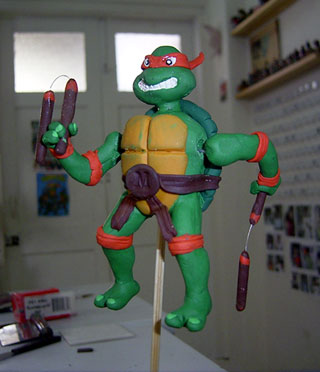 toy design. The Turtle is created with Sculpey Premo, hands are embedded with soft wire, it took me 5 hours to produce Mikey.