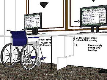 Ergonomic on wheelchair inrelation to CPU and moniter