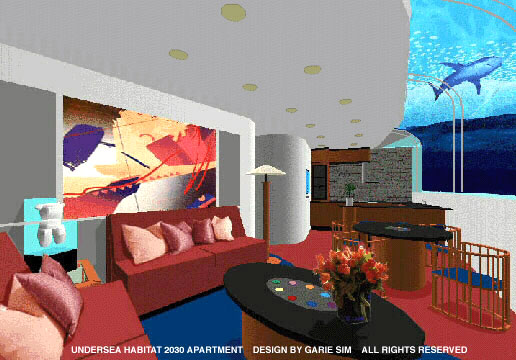 A virtual design apartment under the sea in the year 2030, technology and materials will be very