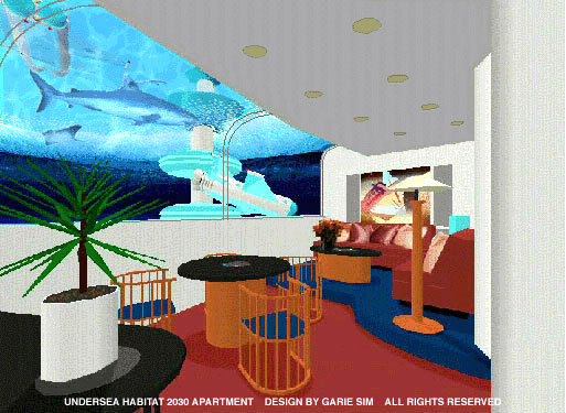 A virtual design apartment under the sea in the year 2030, technology and materials will be very
