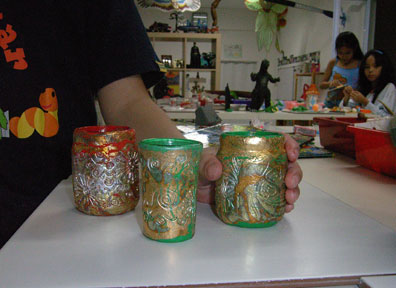 RECYCLE BOTTLE AND GLASSES WITH POLYMER CLAY PROJECTS BRYAN ONG & ZHI HAO 9 Years & 7 Years Old