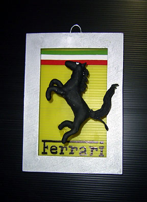 Jerald's Polymer Clay Ferrari Logo on Silver Framing